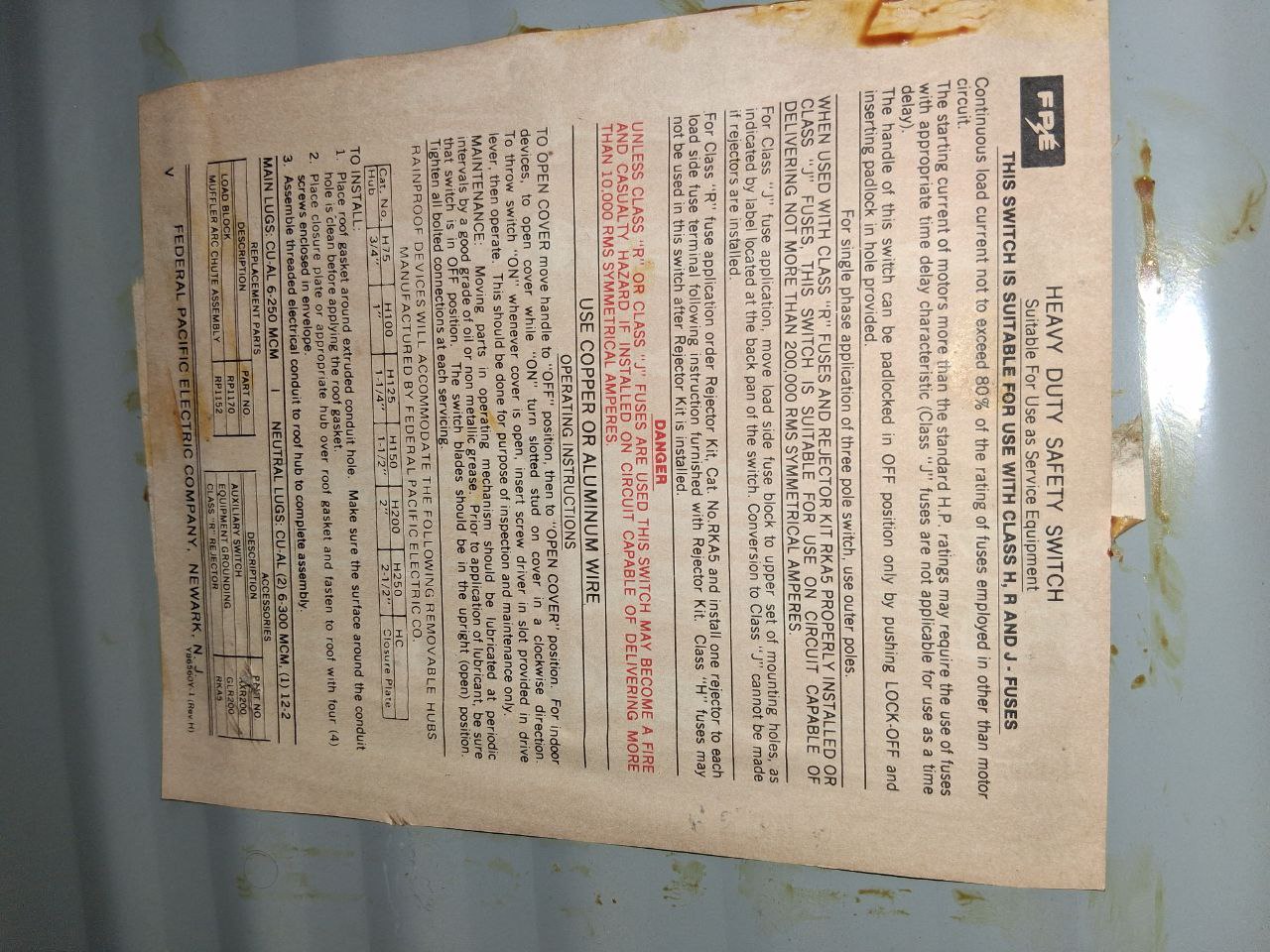 FPE Disconnect 200 Amp 240 Volt Fused