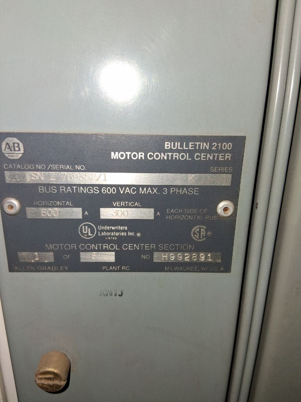 A-BBulletin 2100 Motor Control Center 800 Amp 600 Volt 3 Phase Cat# SNZ769352/1