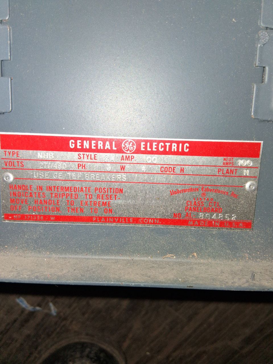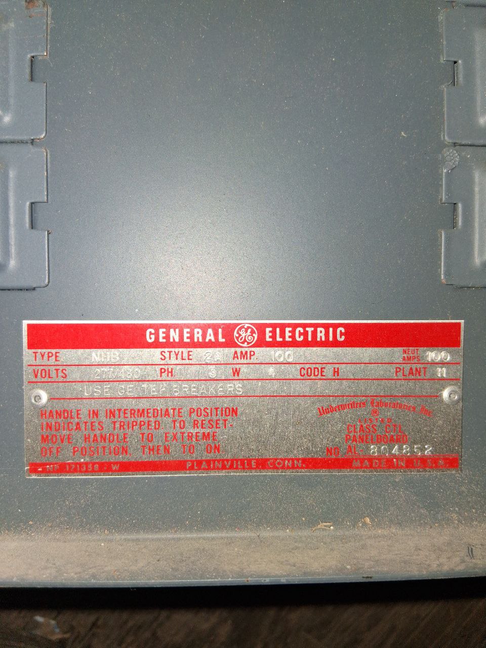 GE NHB 100 Amp Panel 277/480 Volt 3 Phase 4 Wire