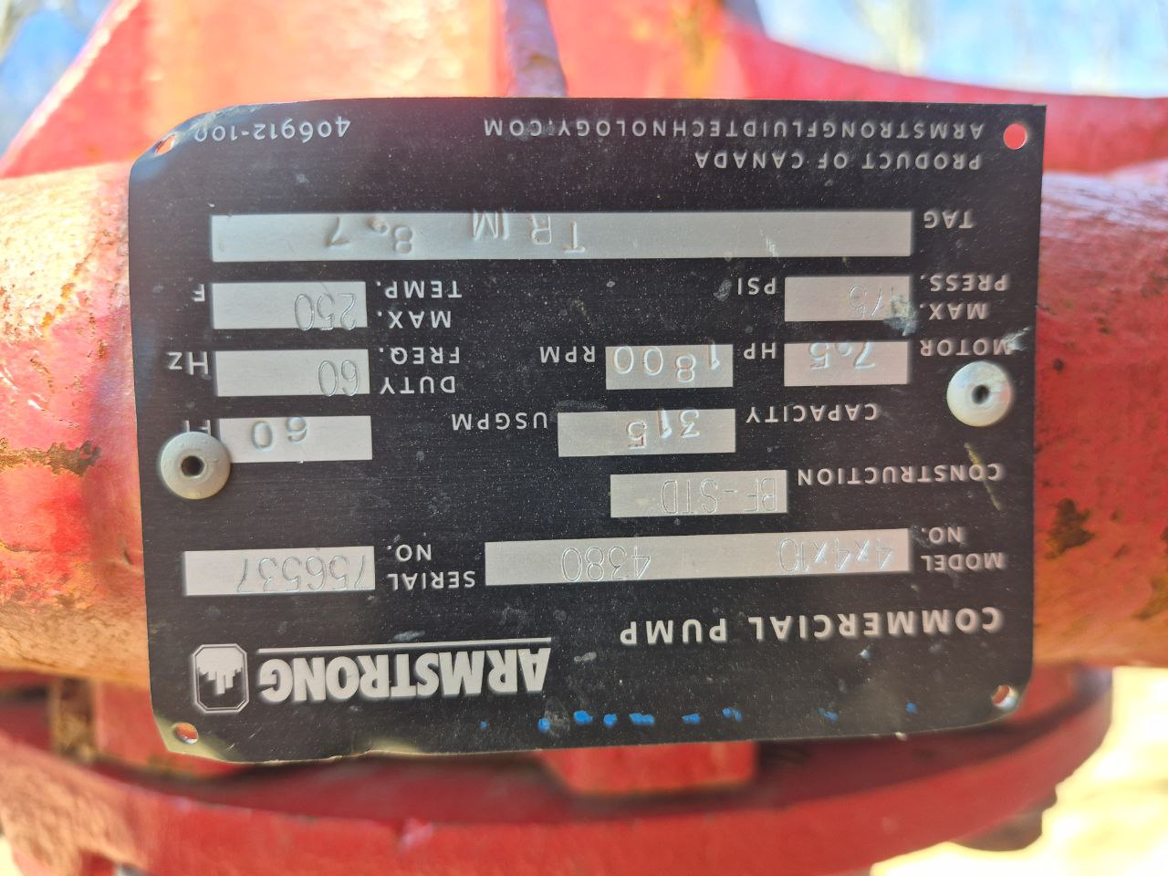 Armstrong Pump 4380 7.5 HP 1800 RPM/Motor 7.5 HP 208-230/460 Volt 1765 RPM
