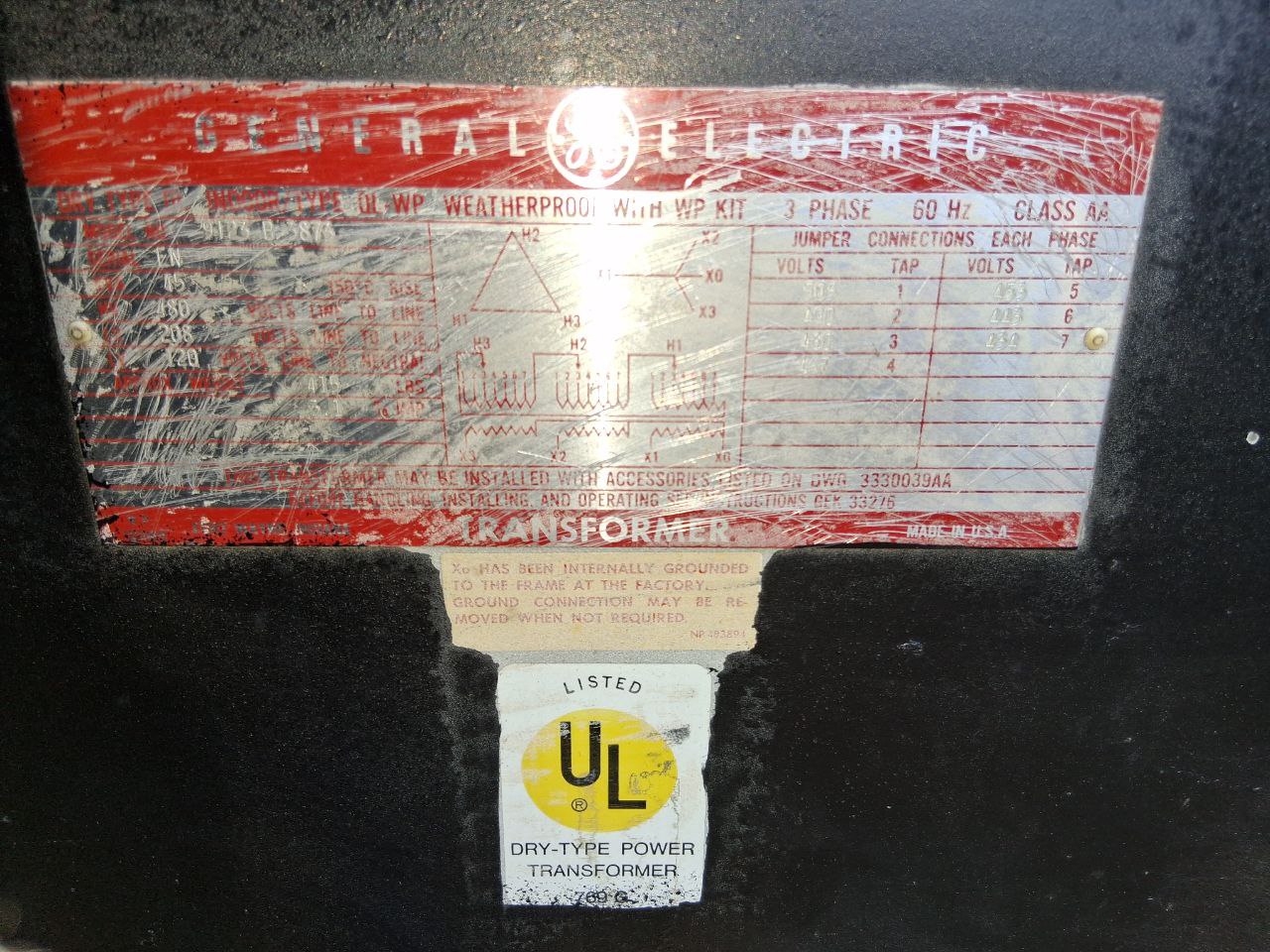GE 45 KVA Transformer 480-208/120 Volt