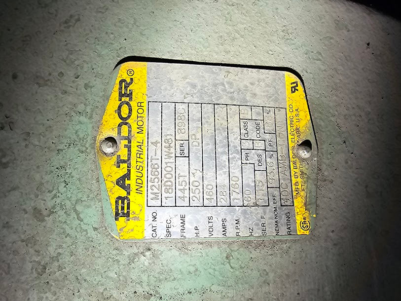 250 DP HP Baldor Motor 460 Volt 284 Amps 445T Frame RPM 1760 60 Hz Cat# M2566T-4