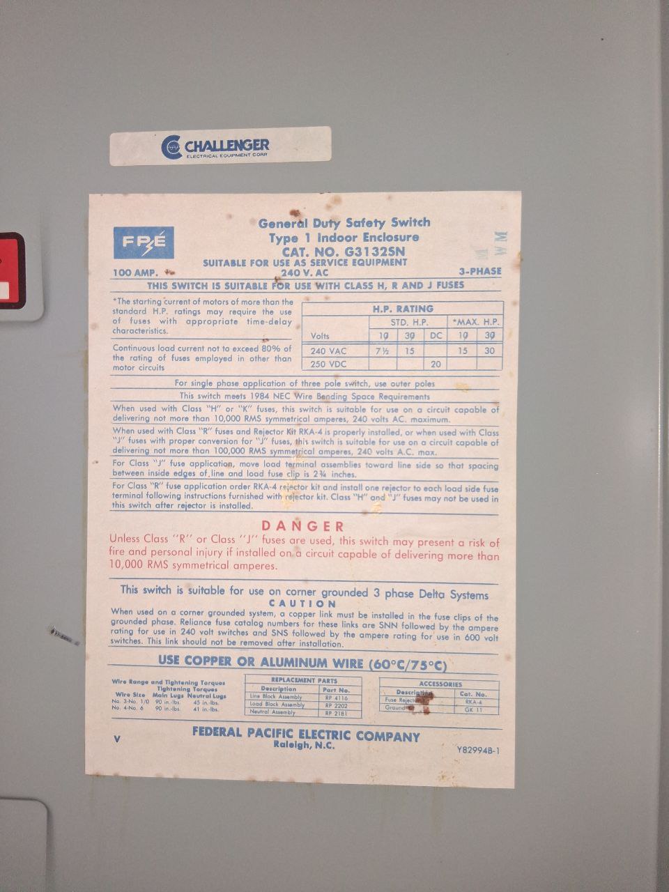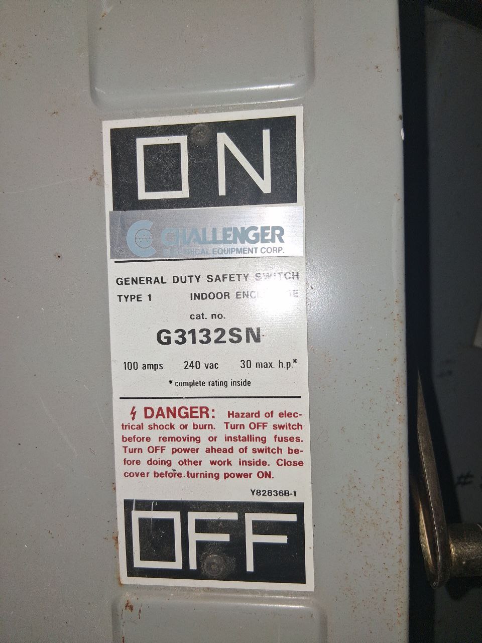 Challenger/ FPE Disconnect 100 Amp 240 Volt 30 Max H.P Cat# G3132SN