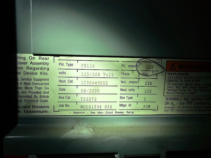 Cutler Hammer PRL1A 225 Amp Panel With Breakers 120/208 Volt 3 Phase 4 Wire