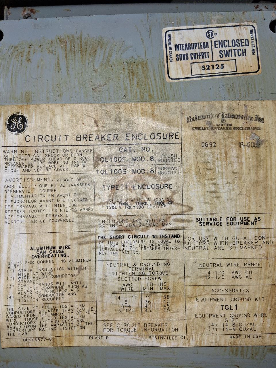 GE Circuit Breaker In Enclosure Cat# TQL100F Model 8