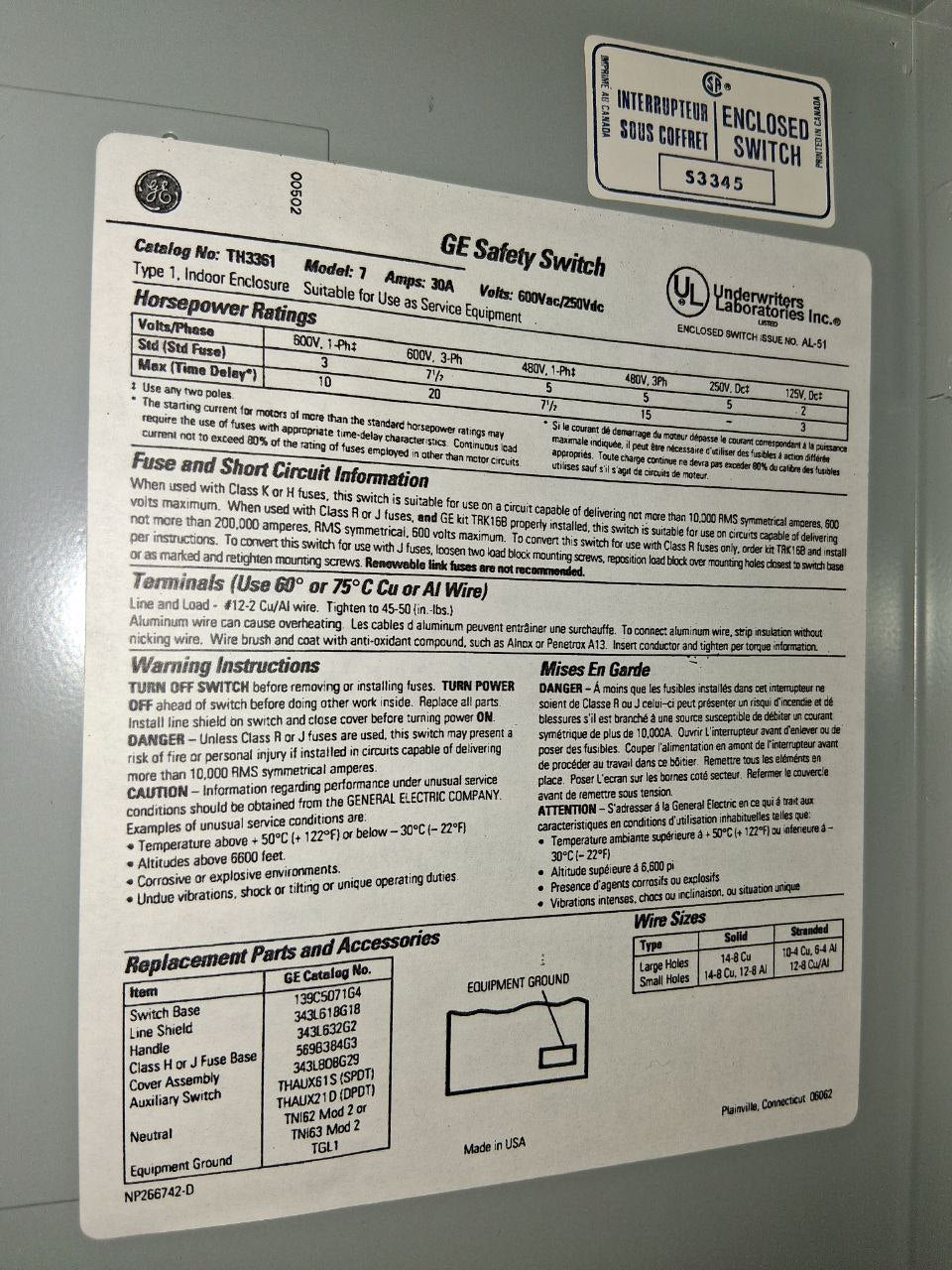 GE Disconnect 30 Amp 600 Volt Model 7 Cat# TH3361