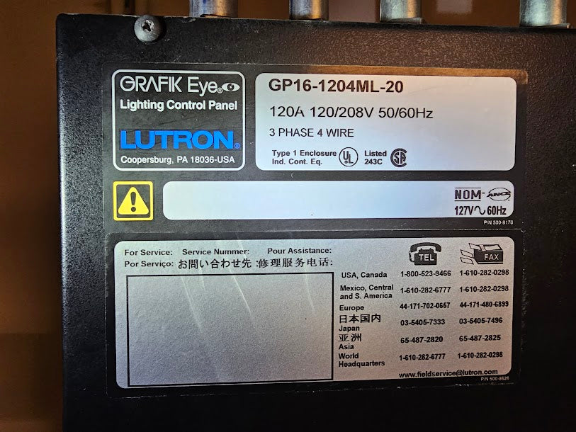 Grafik Eye/Lutron Lighting Control Panel 120 Amp 120/208 Volt 50/60 Hz 3 Phase 4W