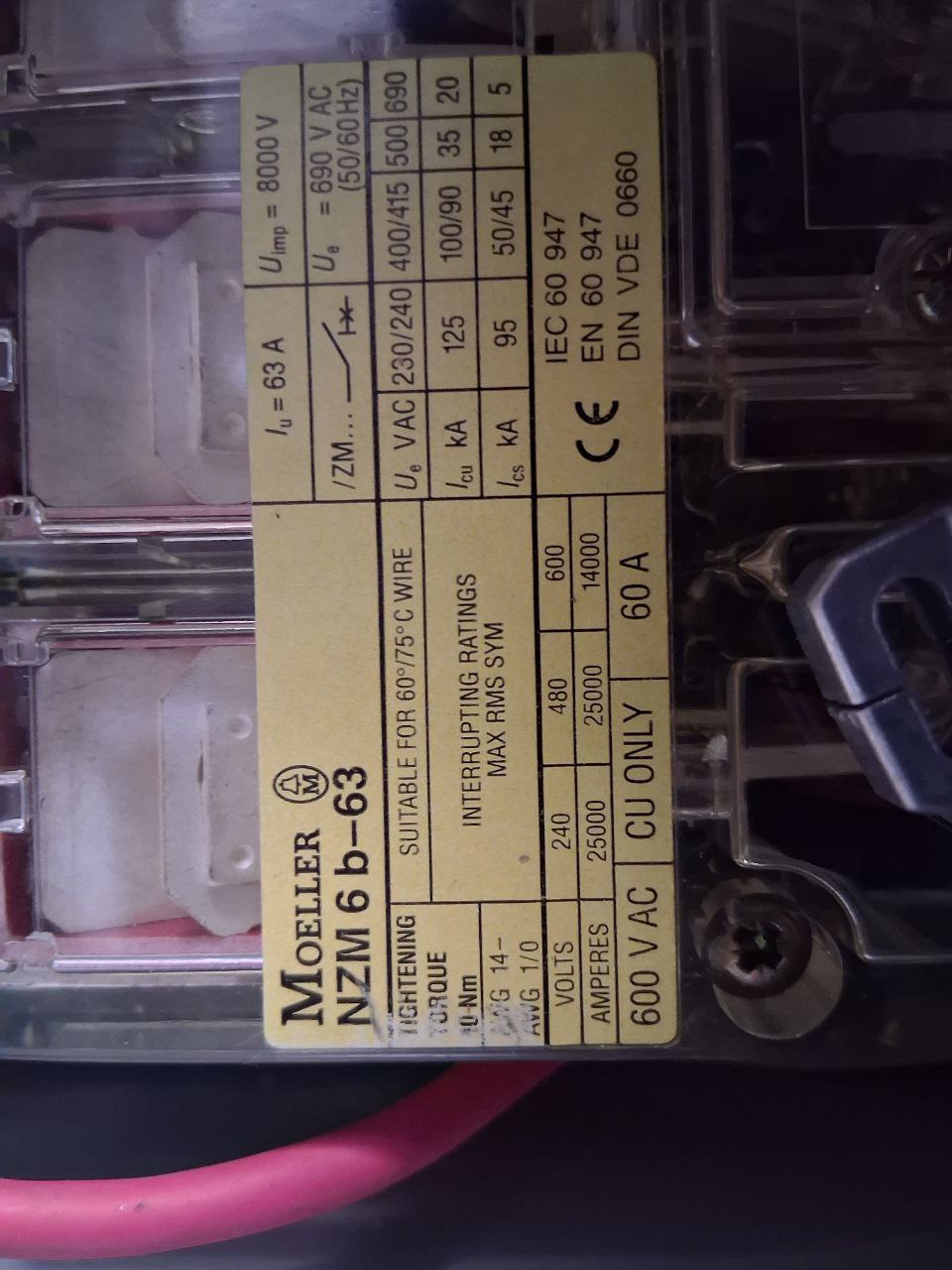 Klockner MOELLER NZM6B-63 Circuit Breaker 600 Volt 60 Amp
