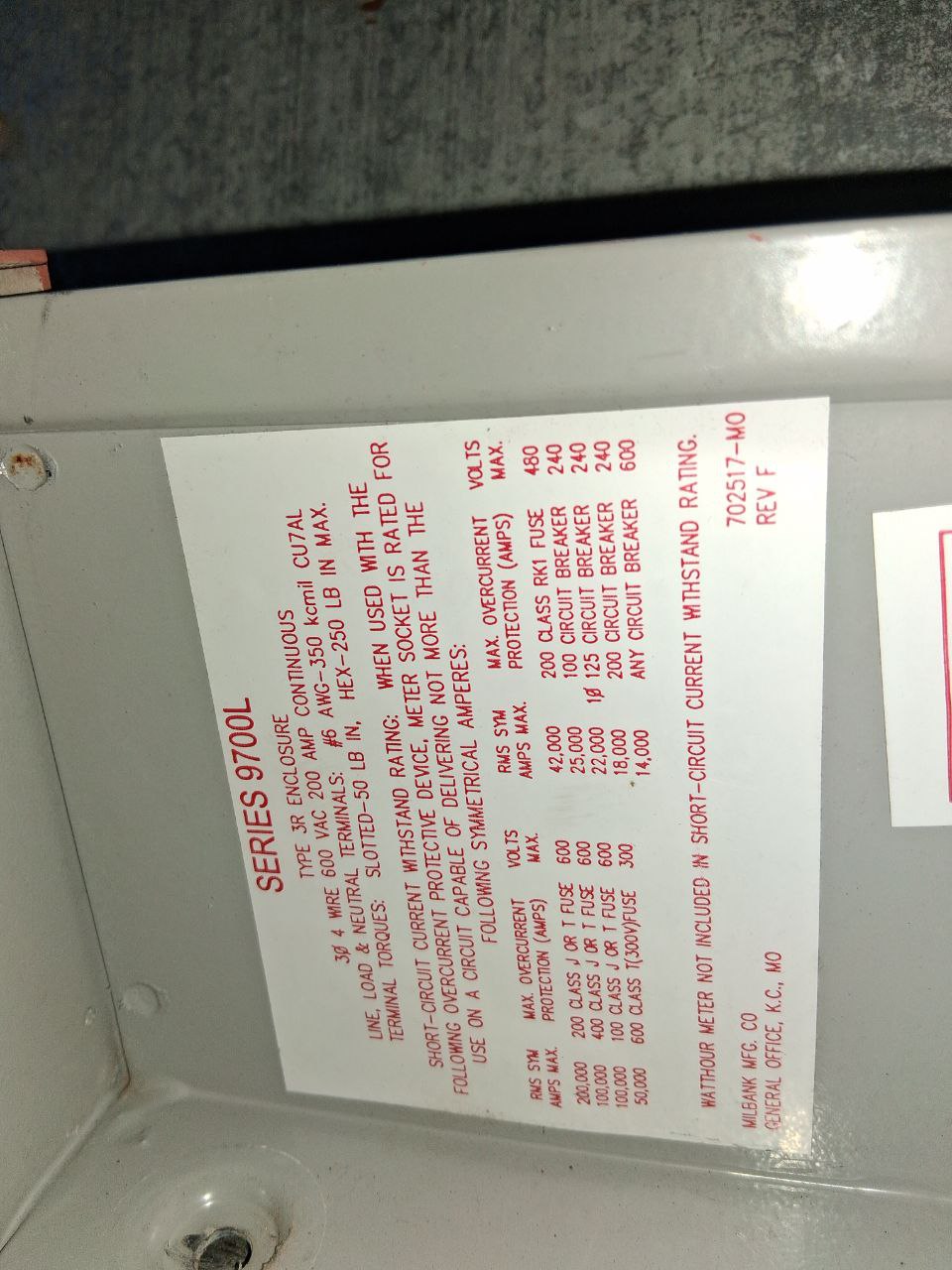 Milbank Watthour Meter 3 Phase 4 Wire 600 Volt 200 Amp