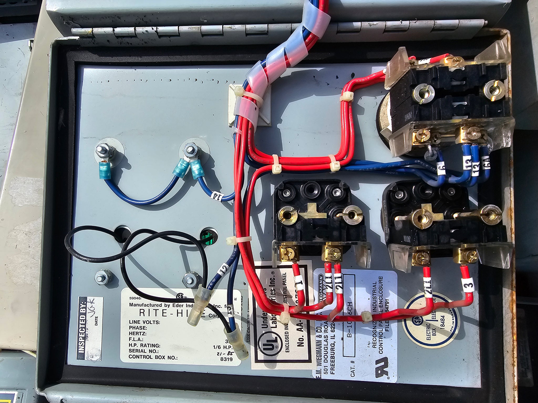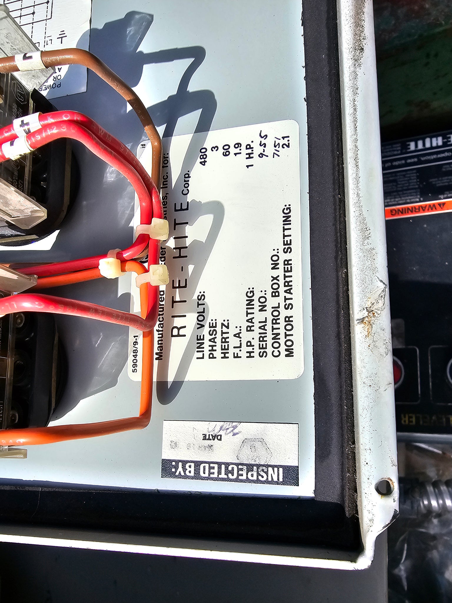 Rite Hydraulic Dock Leveler Line Volts 480 3 Phase 60 Hz F.L.A. 1.9 H.P Rating 1 H.P