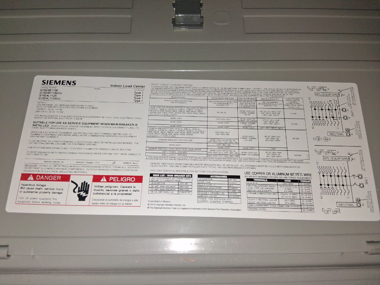 Siemens 125 Amp Panel With Breakers 120-240 Volt