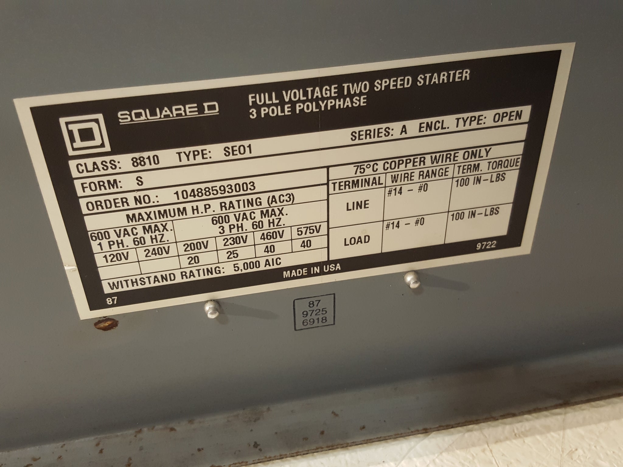 Square D Combination Starter 3 Phase 600 Volt