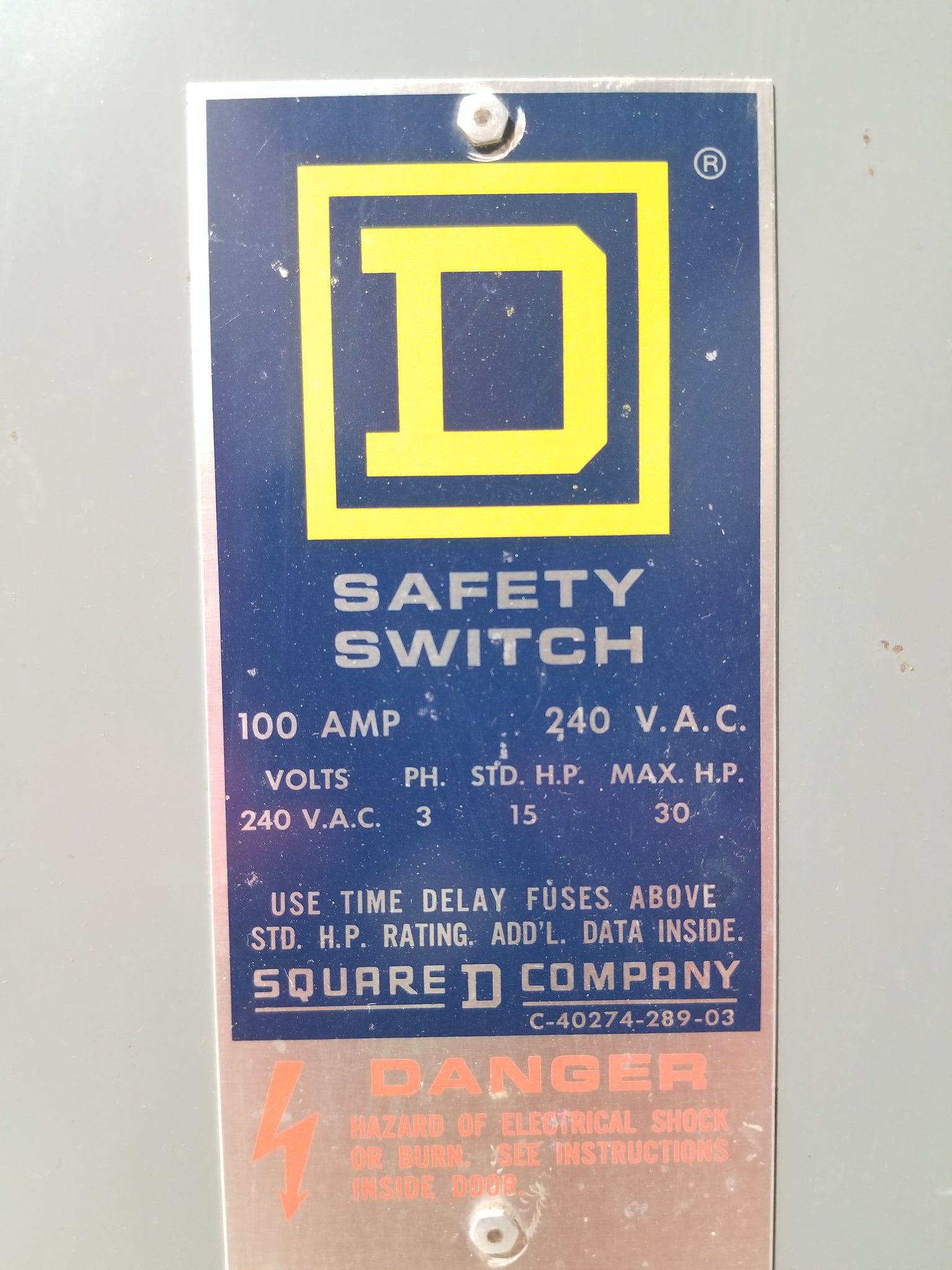 Square D Disconnect 100 Amp 240 Volt 3 Phase Max. HP 30