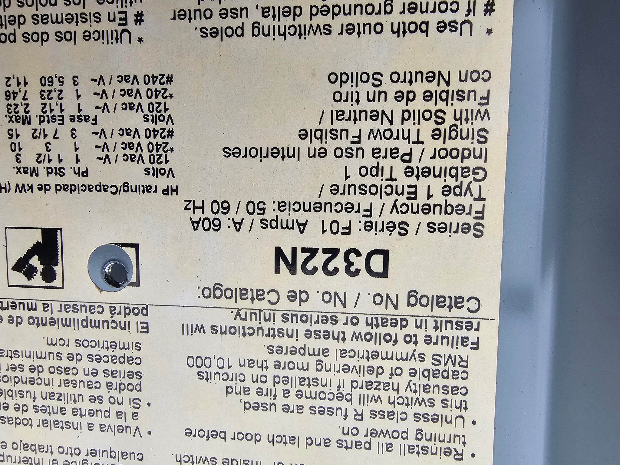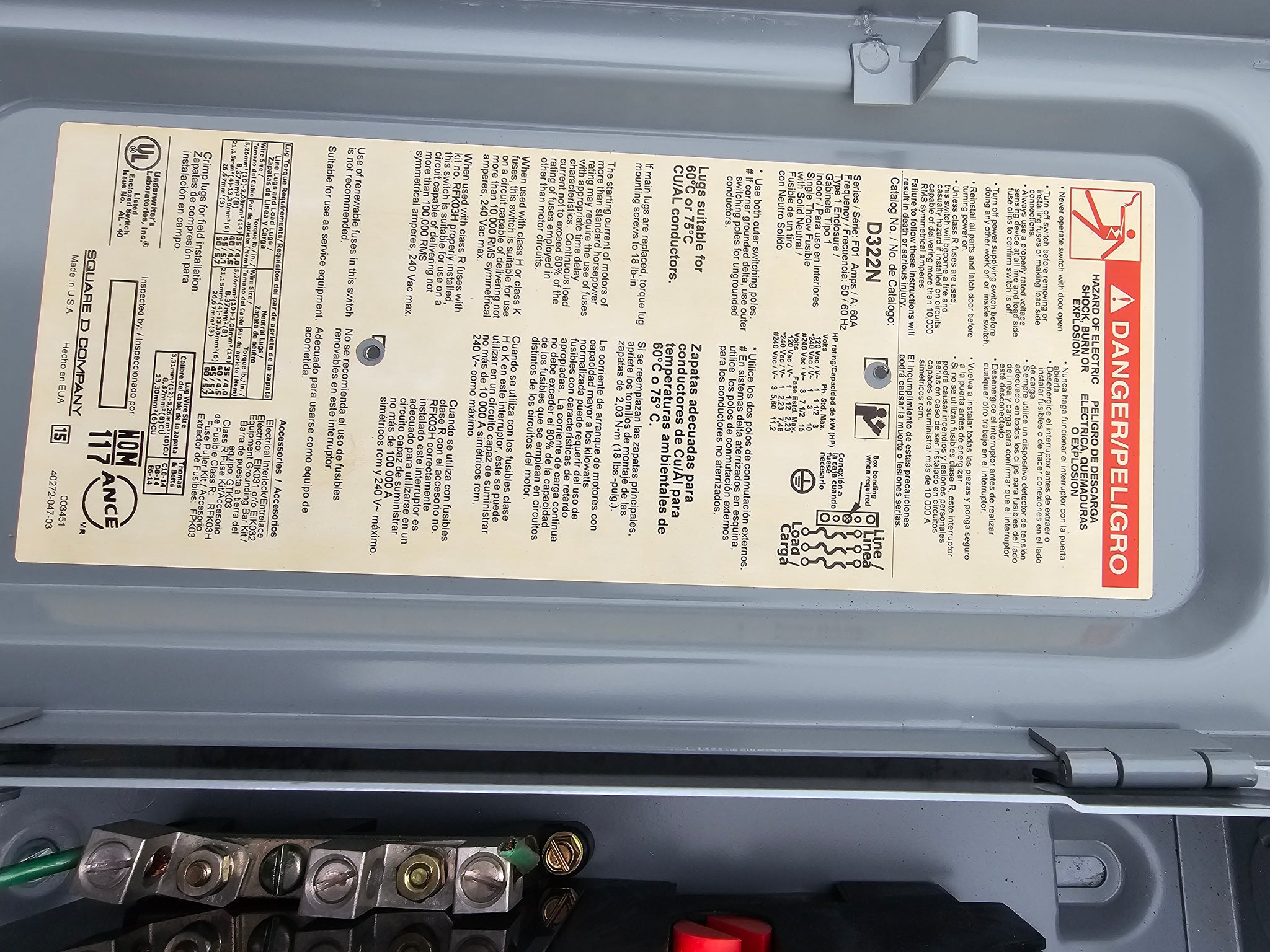 Square D Disconnect 60 Amp 50/60 Cat# D322N