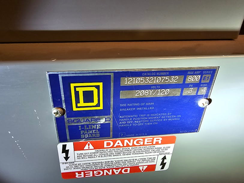 Square D I-Line Panel With 800 Amp Main & Breakers 208Y/120 Volt 3 Phase 4 Wire