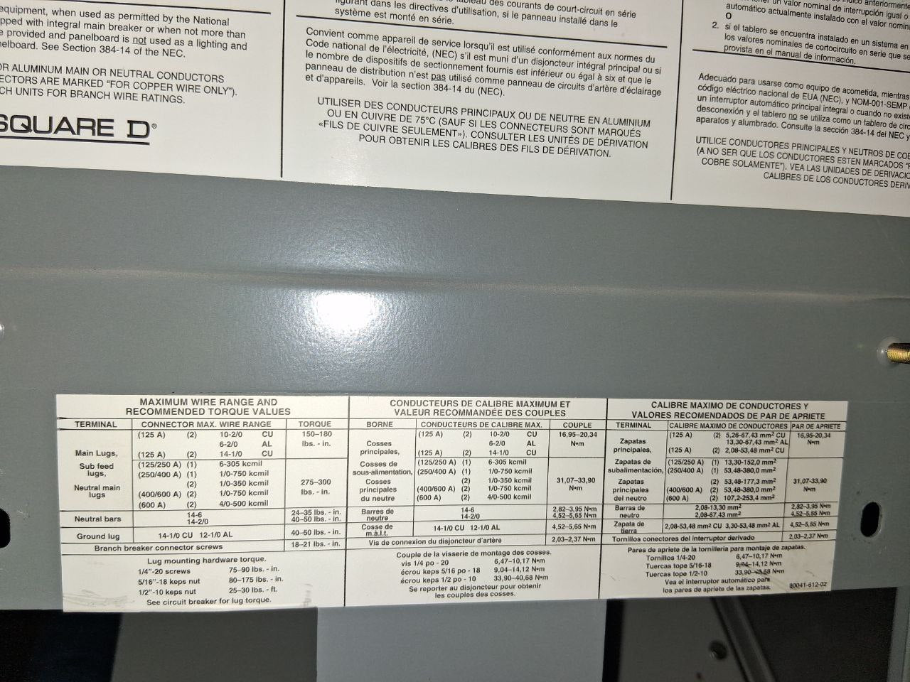 Square D NF 250 Amp Panel With Breakers 600Y/347 Volt 3 Phase 4 Wire