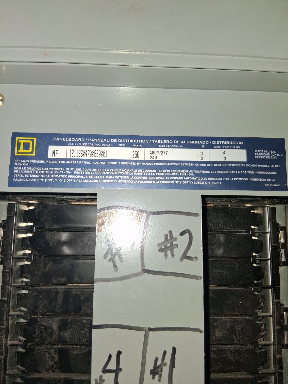 Square D NF 250 Amp Panel 480Y/277-240 Volt 3 Phase 4 Wire
