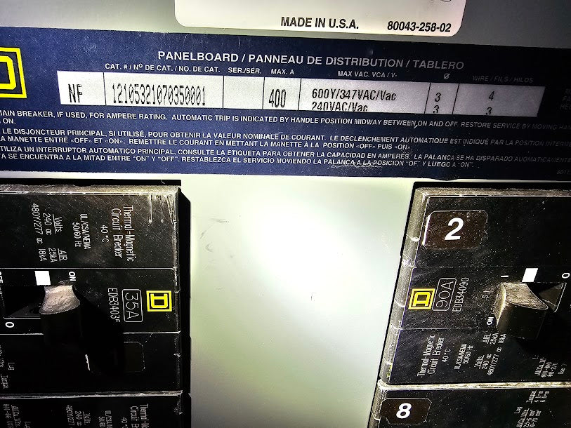 Square D NF 400 Amp Main Panel 600Y/347-240 Volt 3 Phase 4 Wire