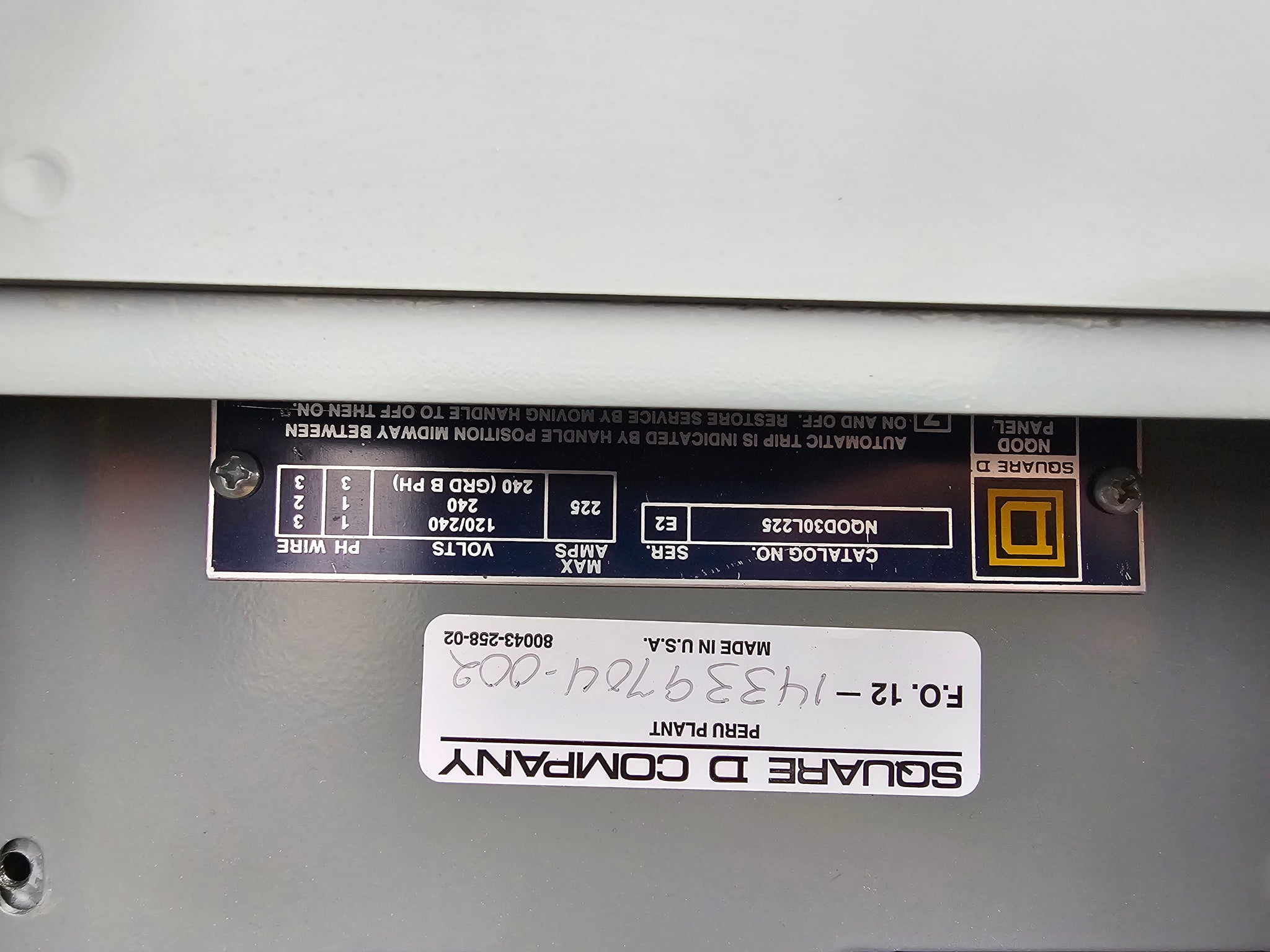 Square D NQOD Panel with Breakers 225 Amp 120/240 Volt 3 Phase 3 wire